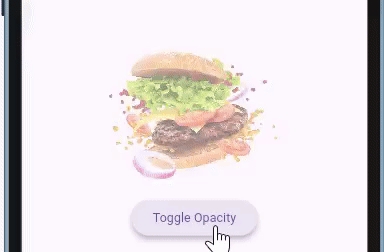 _toggleOpacity— вызывается при нажатии кнопки и изменяет_opacityмежду1.0(полностью видимый) и0.0(полностью скрытый).AnimatedOpacity — при каждом изменении