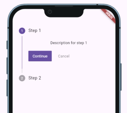 }В этом примере создается простой Stepper с двумя шагами. Каждый шаг отображает заголовок и описание, а кнопки "Continue" и "Cancel" позволяют пользователю переходить между ними.